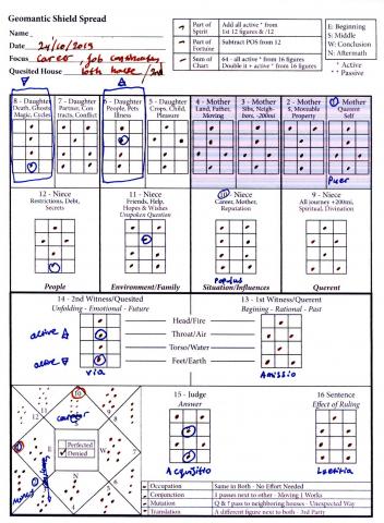 In both cases, the Geomancer should be open to all answers and possibilities and not try to limit them to what he wants to hear or see, he or his client.